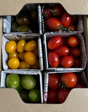 【ミニトマト、中玉トマト、大玉トマト、にんにく、そら豆、ズッキーニ、オクラ、マイクロキュウリ、食用ほおずき、落花生などの野菜】の中から旬のものを詰め合わせてお送りします。