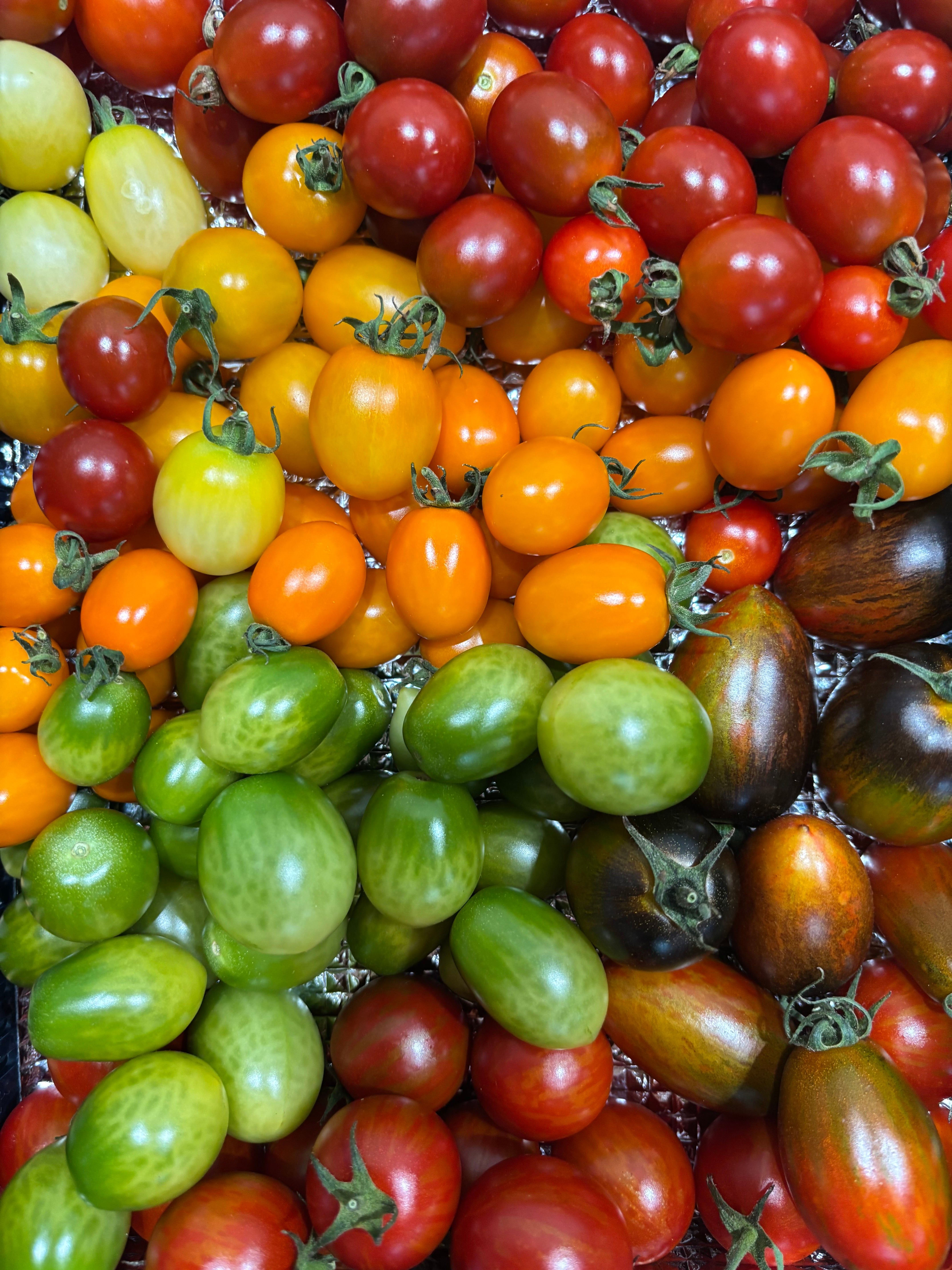 あか・きいろ・みどりなどのカラフルミニトマト。